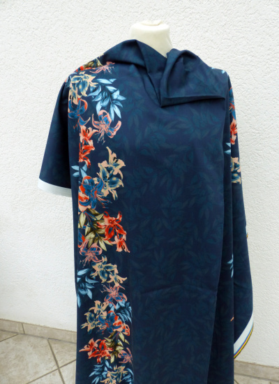 Nach ca. 25 cm vom Rand fängt die ca. 20 cm breite längsverlaufende Bordüre an. Es sind zwei Bordüren pro Stoffbreite.