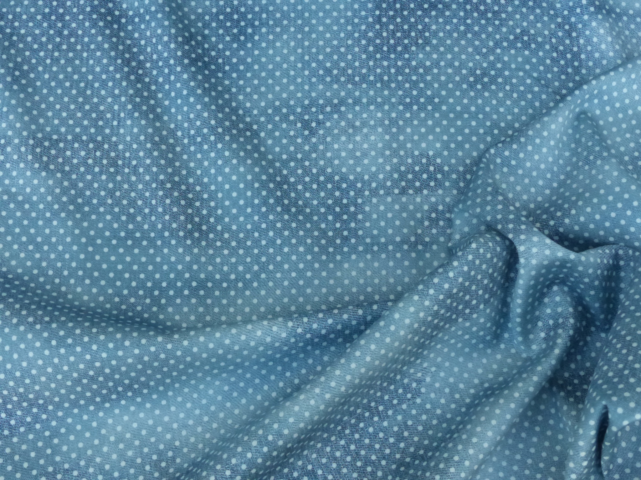 Er ist gebatikt, mit einem Punkte Druck.