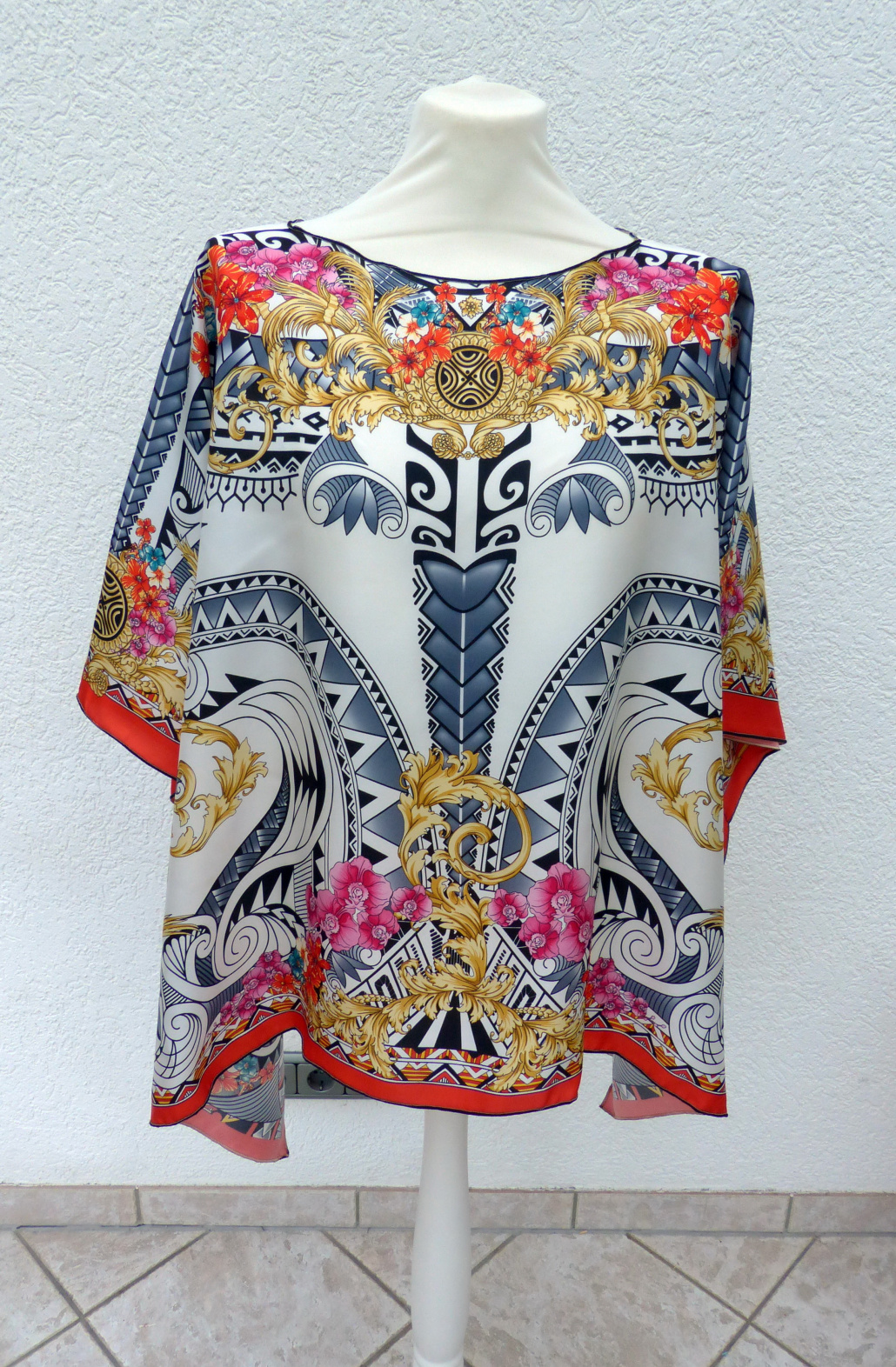 1 Rapport reicht für diese Tunika, wird nur in der Mitte der Halsausschnitt raus geschnitten und umgenäht. An den Seiten eine Naht.